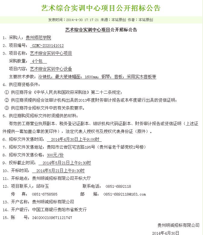 艺术综合实训中心项目招标公告